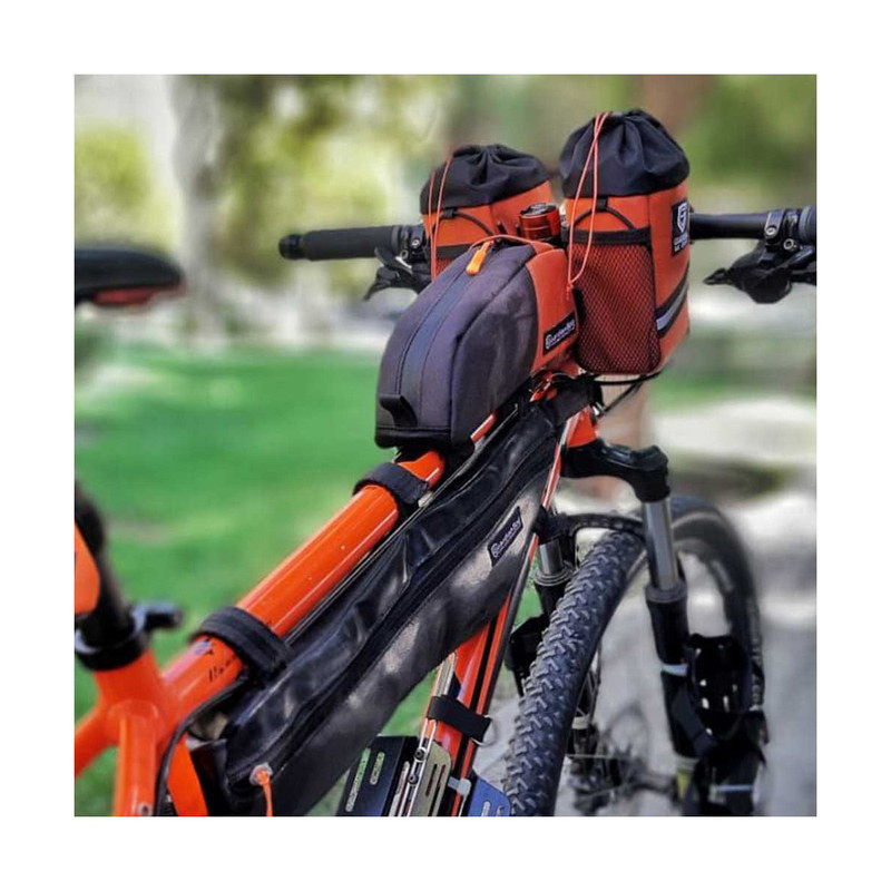 کیف دوچرخه با ساختاری مقاوم، محفظه ای عالی برای کلیدها، بطری های نوشیدنی و وسایل شما فراهم می کند این محصول جفت به فروش میرسد. این محول قابل نصب بر روی انواع دوچرخه میباشد.